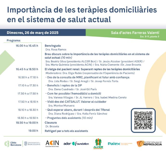 Esta jornada está dedicada a explorar la importancia de las terapias domiciliarias en el sistema de salud actual, destacando sus beneficios, desafíos e impacto en la calidad de vida de los pacientes renales. ¡No te lo pierdas!